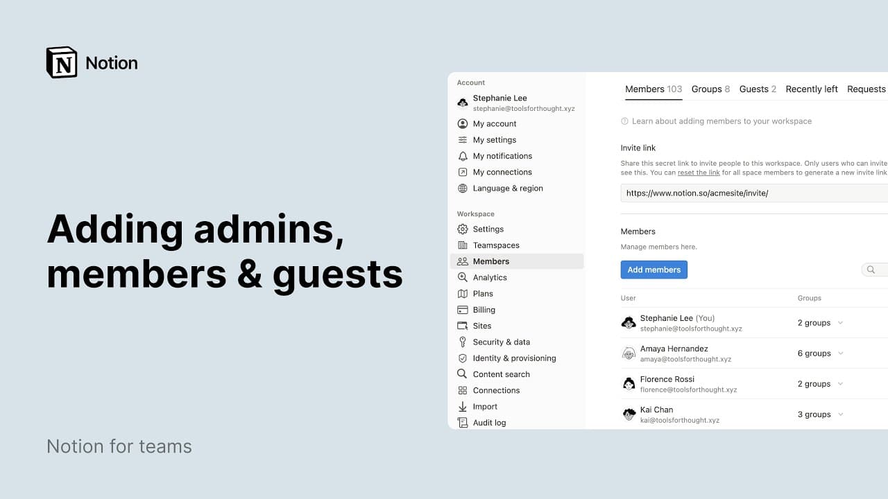 • Wenn du im Enterprise Plan arbeitest und die Besitzer/-innen nicht zulassen, dass Mitglieder Gäste zu Seiten einladen, werden alle von dir zu einer Seite eingeladenen Personen automatisch als Mitglieder hinzugefügt. Bevor du in den Schritten oben Einladen auswählst, kannst du den Mauszeiger über den Namen oder die E-Mail-Adresse des Gasts bewegen, um weitere Informationen dazu zu erhalten, wie diese Person zu der Seite hinzugefügt wird.